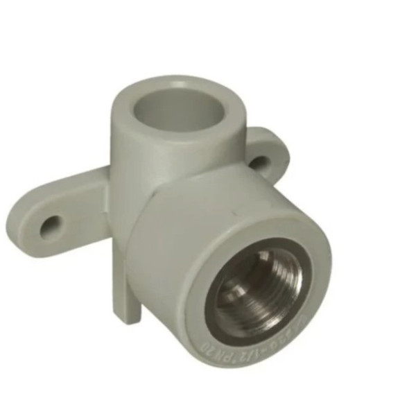 Кутник має традиційну будову, яка включає різьбові з’єднання для легкого кріплення до різьбових фітингів та тілом під пайку для кріплення труб і маю спеціальні кріплення для монтажу на стіни. Він виготовлений з матеріалу, стійкого до корозії, що гарантує надійний захист від впливу вологи та хімічних речовин, типових для водопровідних систем.