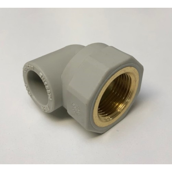 Кутник виготовлено з високоякісного поліпропілену, що відомий своєю міцністю та хімічною стійкістю, та латуні. Корпус оснащений внутрішньою різьбою та трубою діаметром 20 мм для зручного з'єднання з іншими елементами трубопроводу. Матеріал не піддається корозії та має тривалий строк служби навіть за інтенсивної експлуатації.