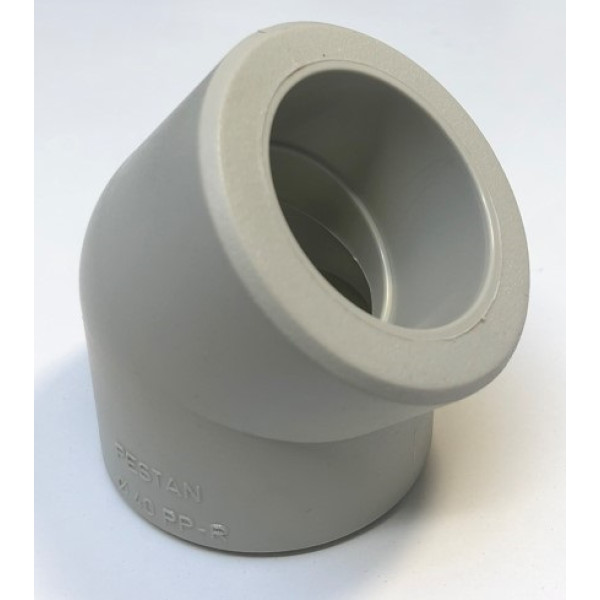 Кутник Pestan d40*45" – це сантехнічний фітінг для з'єднання труб, призначений для зміни напрямку трубопроводу на 45 градусів. Використовується у системах водопостачання і опалення, забезпечує надійне та герметичне з'єднання.