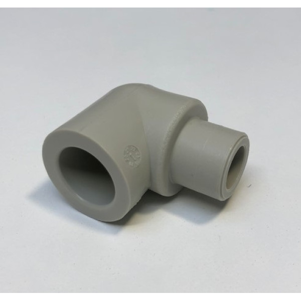 Корпус кутника виконаний з якісного поліпропілену, що забезпечує високу міцність і надійність. Виріб має гладку поверхню, яка полегшує монтаж і сприяє довговічності з'єднання. Антикорозійні властивості матеріалу захищають від впливу вологи та хімічних речовин.