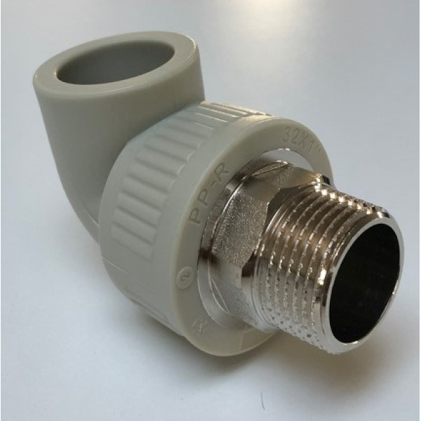 Конструкція кутника виготовлена з міцного матеріалу та має стандартний розмір 32 мм зовнішнього діаметра і зовнішню різьбу 1". Використовується для надійного стикування труб у системах холодного і гарячого водопостачання, а також опалення. Підходить як для застосування в побутових умовах, так і в комерційних будівлях. Модель характеризується стійкістю до механічних навантажень і температурних коливань.