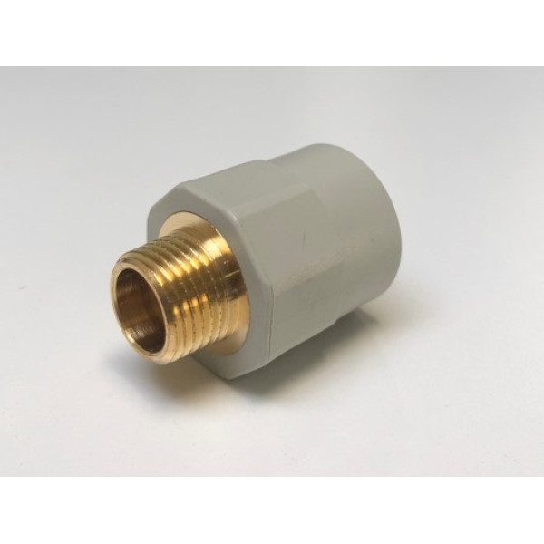 Муфта виготовлена з поліпропілену та міцної латуні, що має антикорозійне покриття для підвищення стійкості до впливу води та агресивних середовищ. Основними елементами конструкції є тіло з різьбленням, що забезпечує надійне кріплення до труб і фітингів та тіло під пайку для з'єднання з трубами. Завдяки якісним матеріалам забезпечується довговічність і безпека експлуатації.