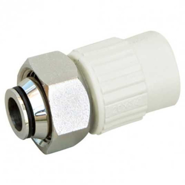 Муфта виконана у формі з'єднувального елемента з корпусом та накидною гайкою, що дозволяє легко підключати поліпропіленові труби та різьбові фітинги з 3/4-дюймовою різьбою. Вона ідеально підходить для монтажу у побутових та промислових системах опалення, водопостачання і теплових мереж. Надійність конструкції забезпечує відсутність протікань та довгий термін служби в умовах експлуатації.