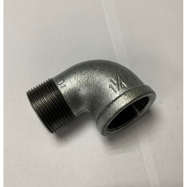Коліно виготовлене методом лиття з ковкого чавуну та має вигнуту форму під кутом 90°. Зовнішня різьба з обох сторін забезпечує надійне приєднання до труб або інших фітингів. Матеріал гарантує міцність і стійкість до експлуатаційних навантажень.