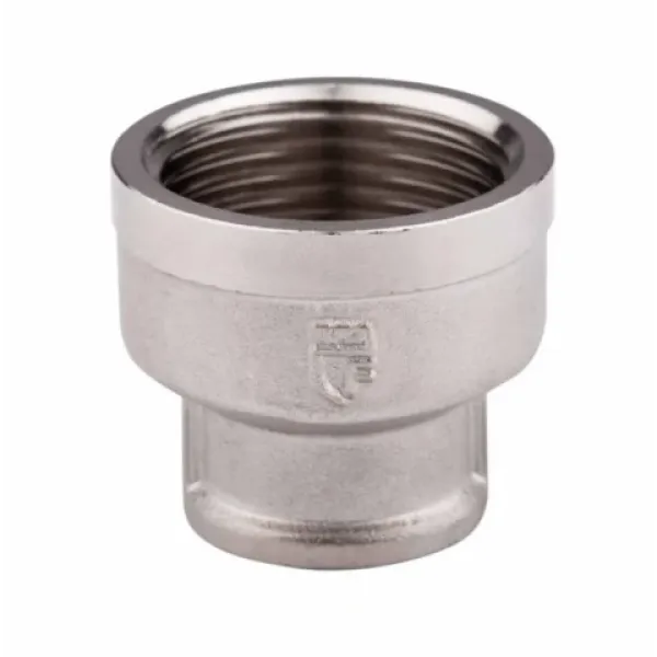 Чавунна редукційна муфта має циліндричну форму з внутрішньою різьбою різного діаметра з обох сторін. Виготовляється методом лиття з ковкого чавуну, що забезпечує високу міцність, герметичність та довговічність з’єднання. Застосовується для плавного переходу між трубами різного діаметра без зміни напрямку трубопроводу.