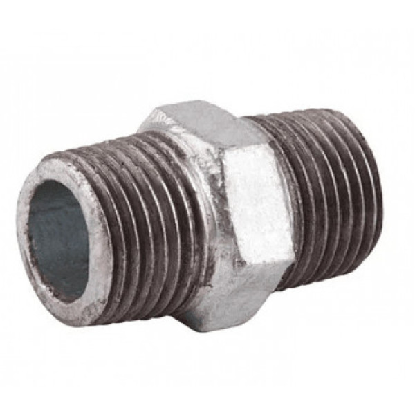 Ніпель виготовлений методом лиття з ковкого чавуну та має зовнішню різьбу з обох боків. Така конструкція забезпечує надійне та герметичне з’єднання елементів трубопроводу, витримуючи високі навантаження та тривалий термін експлуатації.