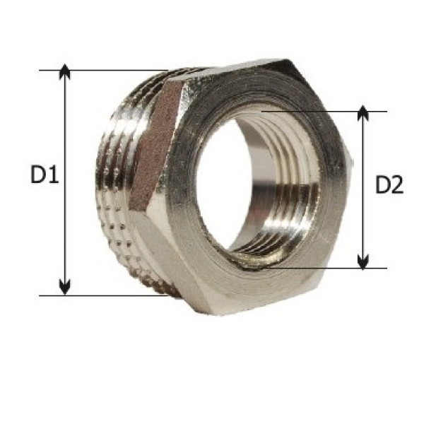 Конструктивно футорка має циліндричну форму з різьбовими з’єднаннями з двох боків різного діаметру. Основним матеріалом є латунь, покрита шаром нікелю, що підвищує зносостійкість та забезпечує надійний захист від корозії. Завдяки якісній обробці поверхні і міцним різьбовим з’єднанням, виріб гарантує довготривалу експлуатацію без протікань.