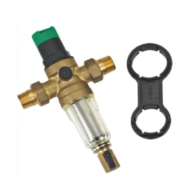 Корпус фільтра виготовлений із міцної латуні, що забезпечує високу механічну стійкість і довговічність. Вбудований фільтруючий елемент із нержавіючої сталі надійно затримує механічні домішки, а зливний клапан спрощує процедуру самоочищення. Редуктор тиску дозволяє підтримувати стабільний робочий тиск, а манометр відображає поточний стан мережі.