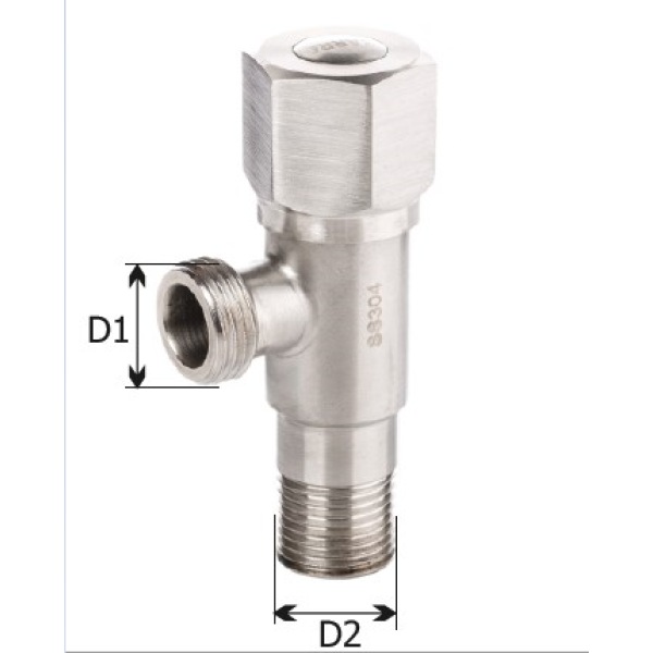 Кран має стандартні різьбові з’єднання, що дозволяє легко під’єднати його до гнучких підводок або труб водопровідної мережі. Конструкція виконана у вигляді кутового крана, що зручно для монтажу в обмеженому просторі. Корпус виготовлений з нержавіючої сталі, яка відзначається високою стійкістю до корозії, механічних навантажень і впливу вологи, що забезпечує тривалий термін експлуатації.