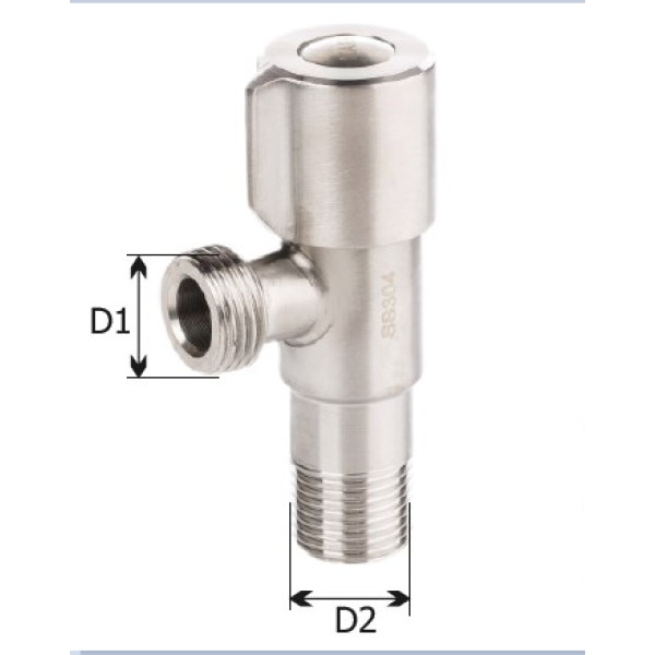 Кран має стандартні різьбові з’єднання, що дозволяє легко під’єднати його до гнучких підводок або труб водопровідної мережі. Конструкція виконана у вигляді кутового крана, що зручно для монтажу в обмеженому просторі. Корпус виготовлений з нержавіючої сталі, яка відзначається високою стійкістю до корозії, механічних навантажень і впливу вологи, що забезпечує тривалий термін експлуатації.