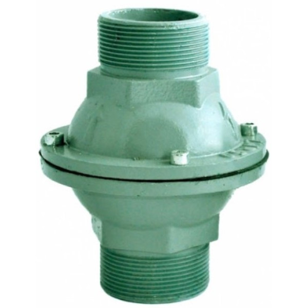 Корпус клапана виготовлений із чавуну, що забезпечує надійність і довговічність у складних умовах експлуатації. Замикаючий елемент — пелюстка або кулька, виконана з матеріалу щільністю, близькою або трохи меншою за щільність води, що дозволяє їй легко рухатися під дією потоку та автоматично перекривати зворотний рух рідини. Напрямок потоку позначається стрілкою на корпусі для правильної установки.