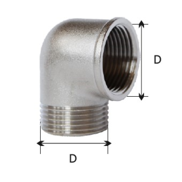 Коліно KARRO виготовляється з латуні та має комбінований тип приєднання — зовнішня та внутрішня різьба, що дозволяє зручно інтегрувати його в різні конфігурації трубопровідних систем. Нікельоване покриття підвищує стійкість до впливу вологи та забезпечує акуратний зовнішній вигляд. Конструкція виробу гарантує герметичне та міцне різьбове з’єднання.