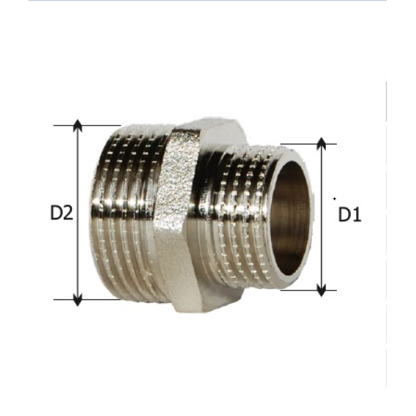 Ніпель KARRO виготовляється з латуні та має тип приєднання — зовнішня різьба / зовнішня різьба, що дозволяє зручно інтегрувати його в різні конфігурації трубопровідних систем. Модель є перехідною та забезпечує з’єднання різьбових елементів. Латунний корпус із нікельованим покриттям має сріблястий колір та відзначається високою міцністю і підвищеною стійкістю до корозії. Конструкція виробу гарантує герметичне та надійне різьбове з’єднання.