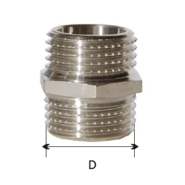 Ніпель KARRO виготовляється з латуні та має тип приєднання — зовнішня різьба / зовнішня різьба, що дозволяє зручно інтегрувати його в різні конфігурації трубопровідних систем. Модель є перехідною та забезпечує з’єднання різьбових елементів. Латунний корпус із нікельованим покриттям має сріблястий колір та відзначається високою міцністю і підвищеною стійкістю до корозії. Конструкція виробу гарантує герметичне та надійне різьбове з’єднання.