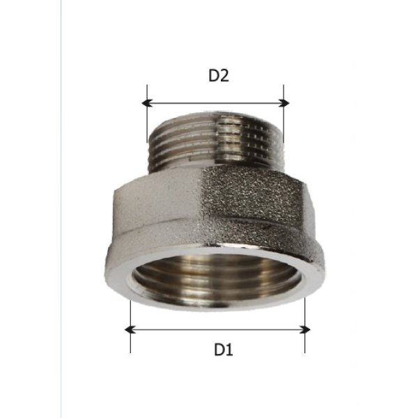 Перехід KARRO виготовляється з латуні та має тип приєднання — внутрішня різьба / зовнішня різьба, що дозволяє зручно інтегрувати його в різні конфігурації трубопровідних систем. Модель призначена для з’єднання труб або фітингів різного діаметра. Латунний корпус із нікельованим покриттям має сріблястий колір та відзначається високою міцністю і підвищеною стійкістю до корозії. Конструкція виробу забезпечує герметичне та надійне різьбове з’єднання.
