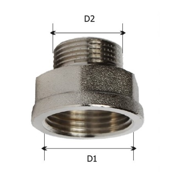 Перехід KARRO виготовляється з латуні та має тип приєднання — внутрішня різьба / зовнішня різьба, що дозволяє зручно інтегрувати його в різні конфігурації трубопровідних систем. Модель призначена для з’єднання труб або фітингів різного діаметра. Латунний корпус із нікельованим покриттям має сріблястий колір та відзначається високою міцністю і підвищеною стійкістю до корозії. Конструкція виробу забезпечує герметичне та надійне різьбове з’єднання.
