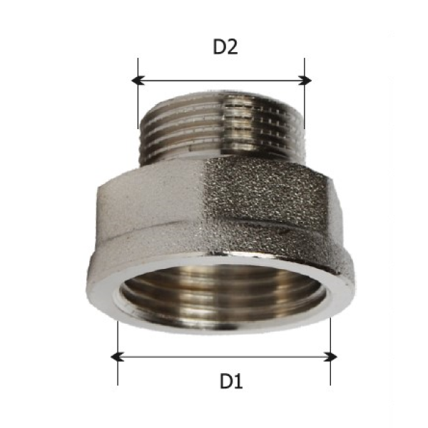 Перехід KARRO виготовляється з латуні та має тип приєднання — внутрішня різьба / зовнішня різьба, що дозволяє зручно інтегрувати його в різні конфігурації трубопровідних систем. Модель призначена для з’єднання труб або фітингів різного діаметра. Латунний корпус із нікельованим покриттям має сріблястий колір та відзначається високою міцністю і підвищеною стійкістю до корозії. Конструкція виробу забезпечує герметичне та надійне різьбове з’єднання.