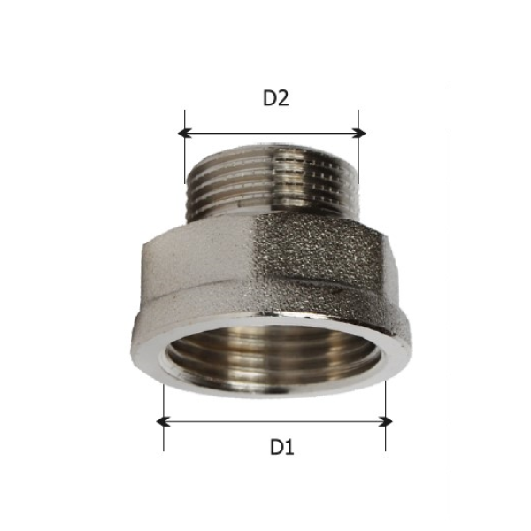 Перехід KARRO виготовляється з латуні та має тип приєднання — внутрішня різьба / зовнішня різьба, що дозволяє зручно інтегрувати його в різні конфігурації трубопровідних систем. Модель призначена для з’єднання труб або фітингів різного діаметра. Латунний корпус із нікельованим покриттям має сріблястий колір та відзначається високою міцністю і підвищеною стійкістю до корозії. Конструкція виробу забезпечує герметичне та надійне різьбове з’єднання.