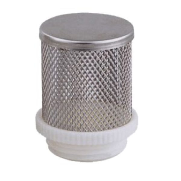 Сітка зворотного клапана встановлюється на різьбове приєднання зворотного клапана та використовується як фільтр грубого очищення. У зборі з клапаном вона занурюється у резервуар або джерело води, звідки здійснюється подача води до насосної системи. Основний фільтруючий елемент виготовлений із нержавіючої сталі, що забезпечує стійкість до корозії та тривалий термін експлуатації у водному середовищі. Корпус із полімерного матеріалу має різьбове підключення, що дозволяє легко встановлювати або замінювати елемент у разі потреби.