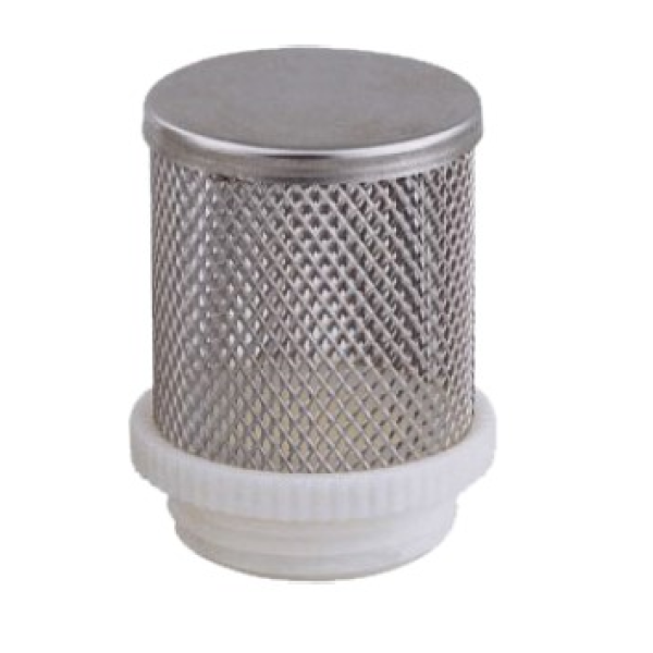 Сітка зворотного клапана встановлюється на різьбове приєднання зворотного клапана та використовується як фільтр грубого очищення. У зборі з клапаном вона занурюється у резервуар або джерело води, звідки здійснюється подача води до насосної системи. Основний фільтруючий елемент виготовлений із нержавіючої сталі, що забезпечує стійкість до корозії та тривалий термін експлуатації у водному середовищі. Корпус із полімерного матеріалу має різьбове підключення, що дозволяє легко встановлювати або замінювати елемент у разі потреби.