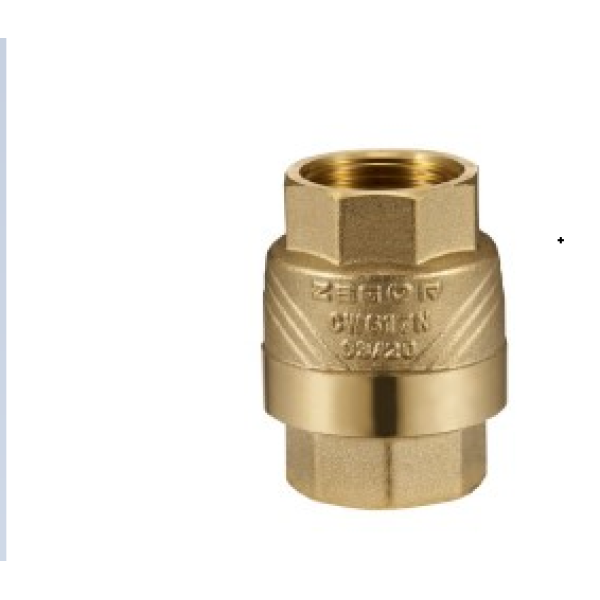 Зворотний клапан ZEGOR виготовлений із латуні — матеріалу, що забезпечує високу корозійну стійкість і тривалий термін служби. Усередині корпусу розміщений спеціальний механізм із пружиною, який забезпечує автоматичне закриття при відсутності прямого потоку середовища.