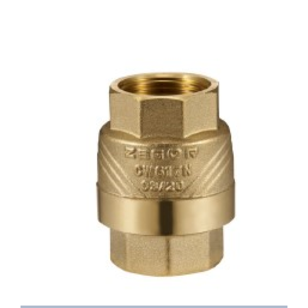 Зворотний клапан ZEGOR виготовлений із латуні — матеріалу, що забезпечує високу корозійну стійкість і тривалий термін служби. Усередині корпусу розміщений спеціальний механізм із пружиною, який забезпечує автоматичне закриття при відсутності прямого потоку середовища.
