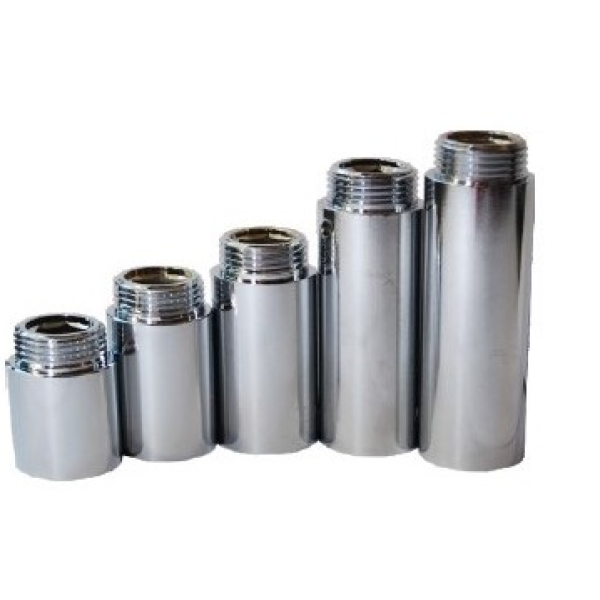 Подовжувач виконаний у вигляді циліндричного різьбового елемента. Застосовується для подовження різьбових з’єднань у водопровідних і опалювальних мережах. Підходить для використання з латунними, сталевими та іншими сумісними фітингами у побутових і комерційних умовах. Завдяки хромованому покриттю забезпечується додатковий захист від впливу вологи та корозії.