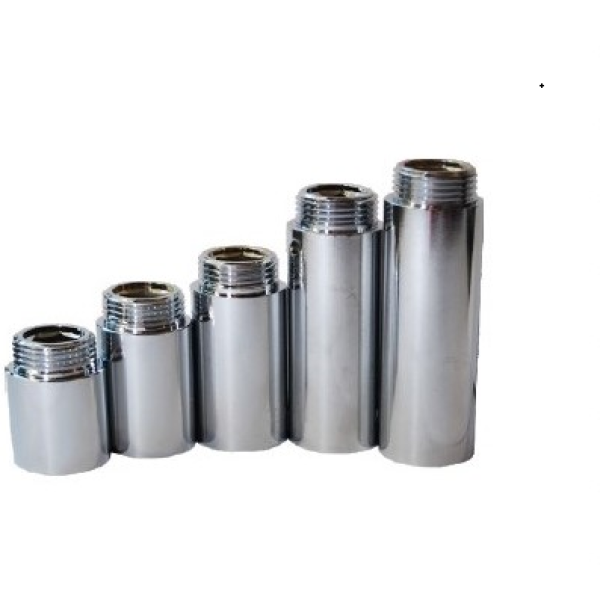 Подовжувач виконаний у вигляді циліндричного різьбового елемента. Застосовується для подовження різьбових з’єднань у водопровідних і опалювальних мережах. Підходить для використання з латунними, сталевими та іншими сумісними фітингами у побутових і комерційних умовах. Завдяки хромованому покриттю забезпечується додатковий захист від впливу вологи та корозії.