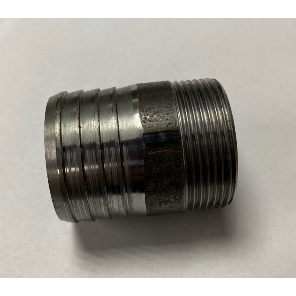Штуцер виготовлений зі сталі та має циліндричну форму з зовнішньою різьбою. Конструкція забезпечує надійне підключення до трубопровідної системи або обладнання. Сталевий корпус гарантує міцність і стійкість до зношування.