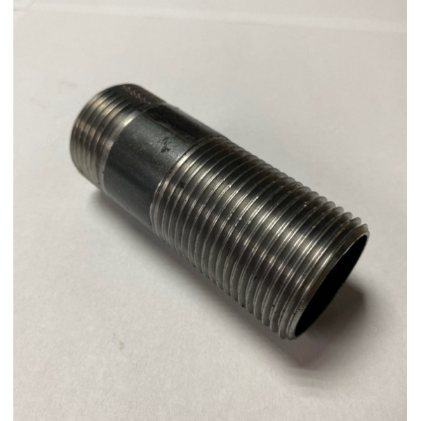 Згін виготовляється зі сталевої труби з різьбою з обох сторін. Конструкція передбачає коротку різьбу з одного боку та довшу різьбу з іншого, що дозволяє використовувати його разом із муфтою та контргайкою для зручного монтажу трубопроводу. Такий елемент широко застосовується під час встановлення сантехнічної арматури або з’єднання нерухомих ділянок трубопровідної системи.