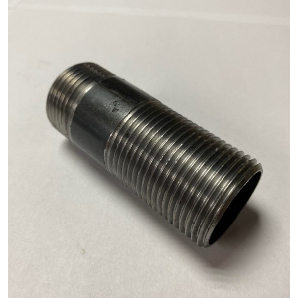 Згін виготовляється зі сталевої труби з різьбою з обох сторін. Конструкція передбачає коротку різьбу з одного боку та довшу різьбу з іншого, що дозволяє використовувати його разом із муфтою та контргайкою для зручного монтажу трубопроводу. Такий елемент широко застосовується під час встановлення сантехнічної арматури або з’єднання нерухомих ділянок трубопровідної системи.