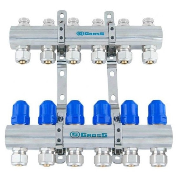 Колектори Gross використовуються для організації розподільчих вузлів у системах теплої підлоги, радіаторного опалення та водопостачання. Моделі без витратомірів відзначаються простою конструкцією, що спрощує монтаж і підвищує надійність. Відсутність євроконусів або можливість їх підключення залежить від конкретної моделі.