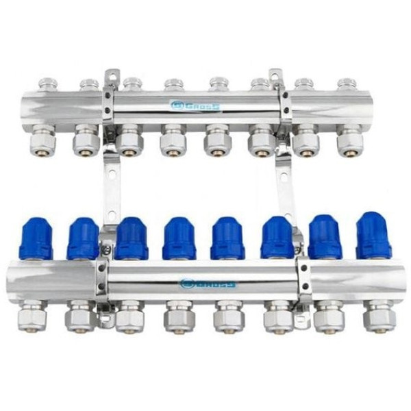 Колектори Gross використовуються для організації розподільчих вузлів у системах теплої підлоги, радіаторного опалення та водопостачання. Моделі без витратомірів відзначаються простою конструкцією, що спрощує монтаж і підвищує надійність. Відсутність євроконусів або можливість їх підключення залежить від конкретної моделі.