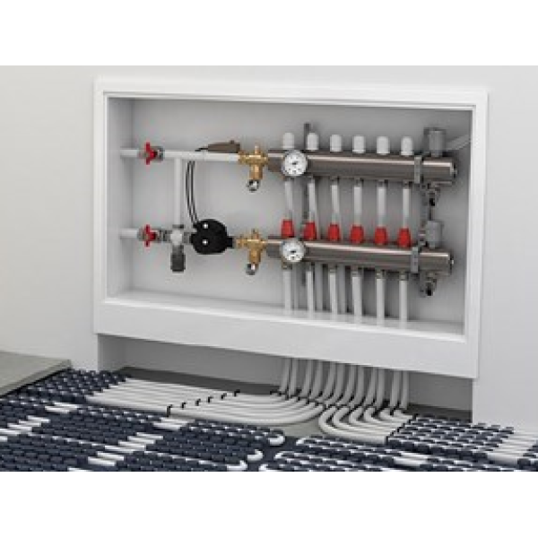 Шафа встановлюється в підготовлену нішу стіни. Завдяки компактним розмірам її можна легко інтегрувати в різні типи приміщень. Після встановлення в шафу монтуються колектори, трубопроводи та інше обладнання системи опалення.