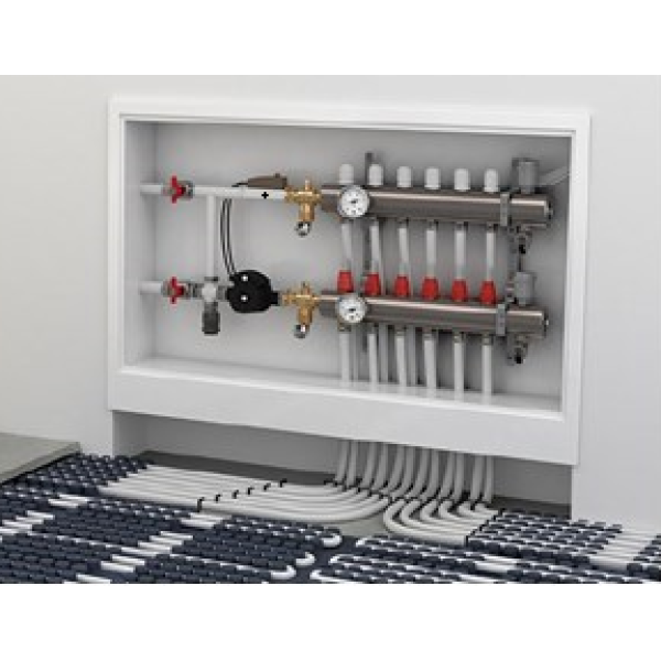 Шафа встановлюється в підготовлену нішу стіни. Завдяки компактним розмірам її можна легко інтегрувати в різні типи приміщень. Після встановлення в шафу монтуються колектори, трубопроводи та інше обладнання системи опалення.
