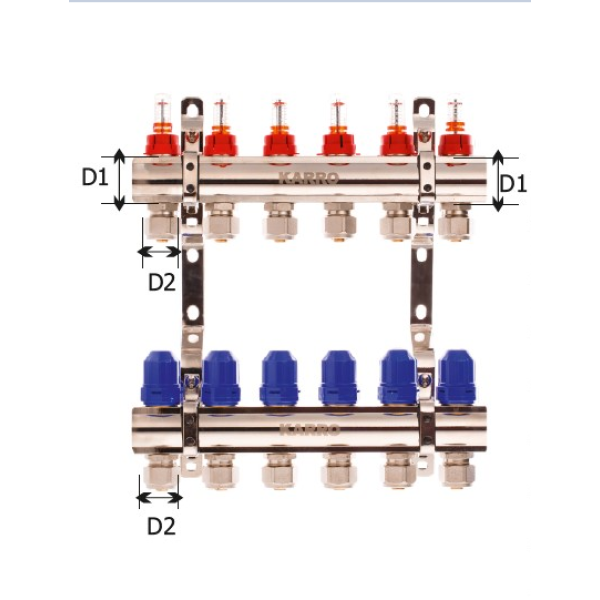 Колекторна група KARRO — це надійний елемент системи опалення чи водопостачання, призначений для рівномірного розподілу теплоносія або води по кількох контурах. Вона оснащена витратомірами для точного контролю потоку та євроконусами для зручного підключення. Така конструкція забезпечує стабільну роботу, простоту регулювання та довговічність у повсякденному використанні.
