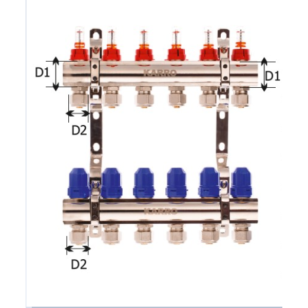 Колекторна група KARRO — це надійний пристрій для розподілу теплоносія в системах опалення та водопостачання. Вона забезпечує точний контроль потоку в кожному контурі, полегшуючи підтримку оптимального температурного режиму. Ключові переваги: оснащення витратомірами для моніторингу, євроконусами для зручного підключення та компактна конструкція для простого монтажу.
