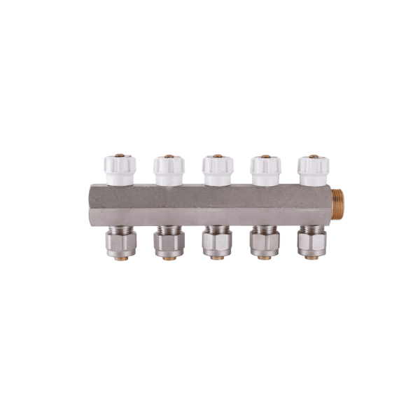 Колектор встановлюється в точці розгалуження системи опалення або водопостачання та підключається до основного трубопроводу через різьбове з'єднання 3/4". До п'яти виходів діаметром 16 мм підключаються труби окремих контурів теплої підлоги, радіаторів або точок водопостачання. За допомогою регулюючих вентилів на кожному виході збалансовується витрата між споживачами або здійснюється повне перекриття обраної гілки для обслуговування чи ремонту без зупинки всієї системи. Монтаж виконується відповідно до проектної документації системи.