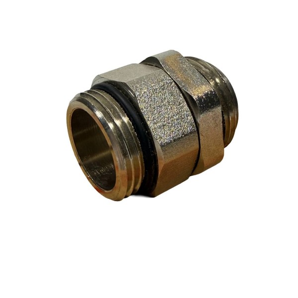 Виготовлений із високоякісної латуні з нікельованим покриттям для захисту від корозії. Конструкція включає зовнішню та внутрішню різьбу на обох кінцях, що забезпечує надійне кріплення. Поверхня оброблена для стійкості до агресивних середовищ у водних системах.