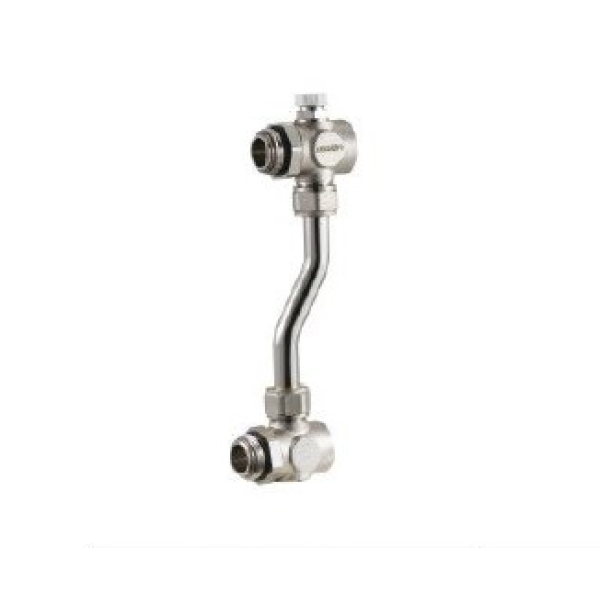 Байпас виготовлений із високоякісної латуні з нікельованим покриттям, що забезпечує захист від корозії та тривалий термін служби. Конструкція включає вбудований перепускний клапан, який автоматично реагує на зміну тиску в системі.
