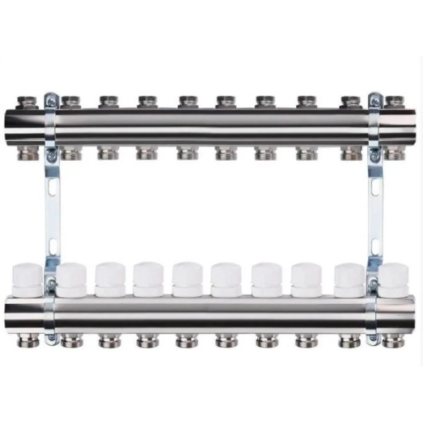 Колектор виготовляється з високоякісних матеріалів (латунь або нержавіюча сталь), що забезпечують стійкість до корозії, перепадів температур і механічних навантажень. Конструкція передбачає надійні різьбові з'єднання та можливість встановлення додаткових елементів регулювання.