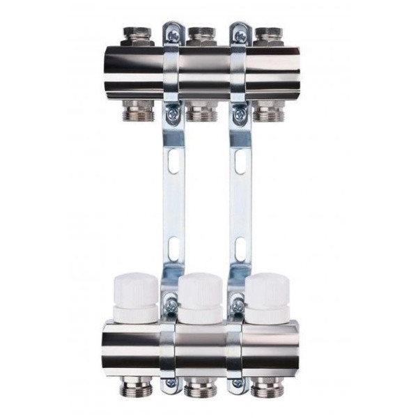 Колектор виготовляється з високоякісних матеріалів (латунь або нержавіюча сталь), що забезпечують стійкість до корозії, перепадів температур і механічних навантажень. Конструкція передбачає надійні різьбові з'єднання та можливість встановлення додаткових елементів регулювання.