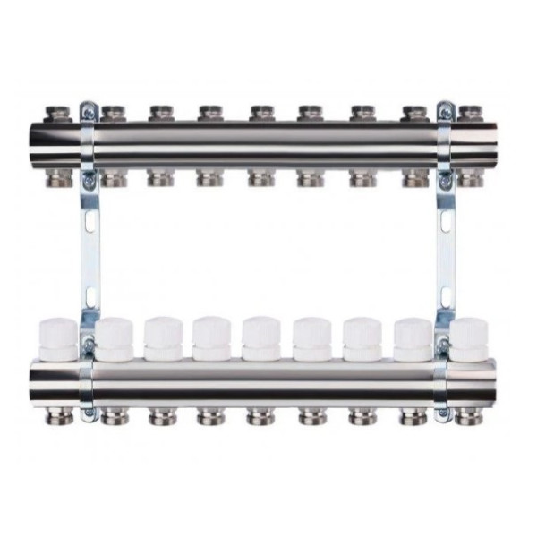 Колектор виготовляється з високоякісних матеріалів (латунь або нержавіюча сталь), що забезпечують стійкість до корозії, перепадів температур і механічних навантажень. Конструкція передбачає надійні різьбові з'єднання та можливість встановлення додаткових елементів регулювання.