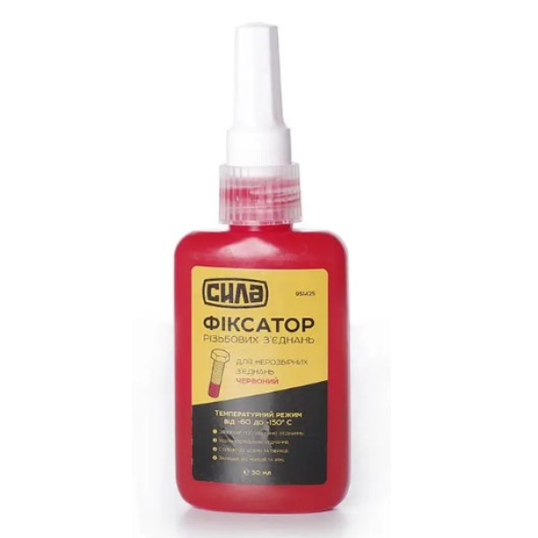 Фіксатор різьби для нерозбірних з'єднань червоний 50 г (СИЛА)