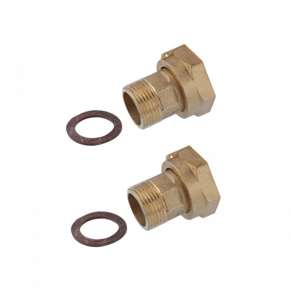 Цей комплект складається з пари спеціалізованих елементів, призначених для підключення лічильника до трубопроводу. Використовується в побутових і комерційних мережах для точного обліку витрати води. Підходить для різних типів об'єктів, де важлива стабільність і довговічність з'єднань.