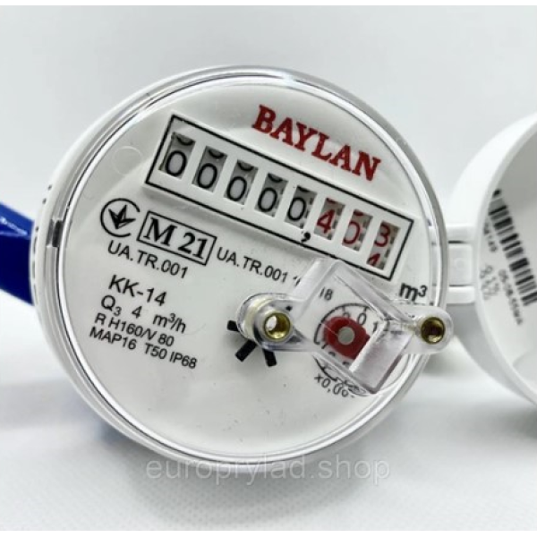 Baylan КК‑14 (20) — одноструменевий сухохідний лічильник холодної води з монтажною довжиною 130 мм та різьбовим (муфтовим) підключенням, який використовується для точного обліку об'ємів споживання води у побутових, комунальних та малохабітних промислових мережах. Механізм сухого типу ізольований від води та вологи, що мінімізує ризик запотівання та помилок приладу.